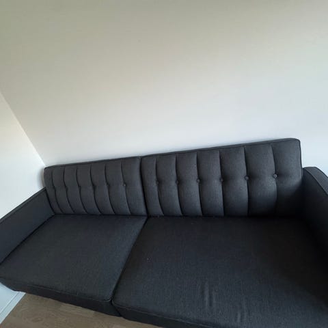Bra förvaringsmöjlighet under schäslongen, bekväm soffa som är perfekt för när vänner eller familj ska sova över.