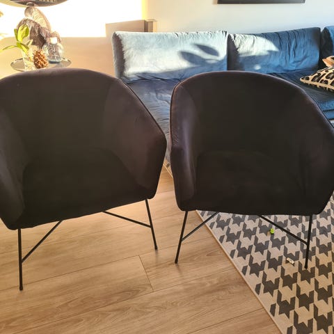Fåtölj med fotpall Mio Elin några år gammal men i gott skick. Grått tyg Rocco som matchar soffor från Mio. Ben i ek.
