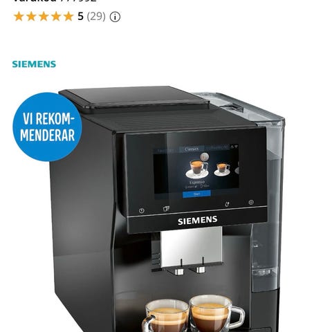 Säljer en Siemens EQ300 espresso-maskin då jag ej använder den. Har bryggt 5 koppar så den är i nyskick.