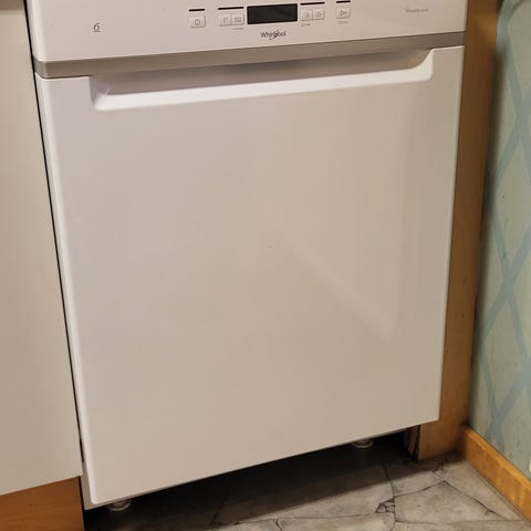 Bosch underbyggd diskmaskin med standardstorlek och vit färg. Maskinen är avsedd för inbyggnad under köksbänk och har ett inre utrymme med justerbara korgar för effektiv diskning.