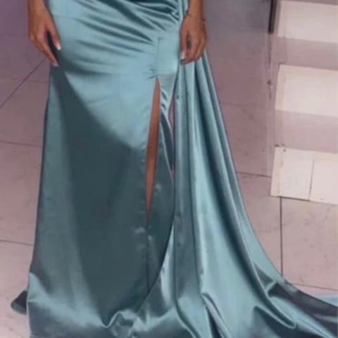 Fin festklänning i en mörkgrön färg. Slits. Fint material. Använd en gång.