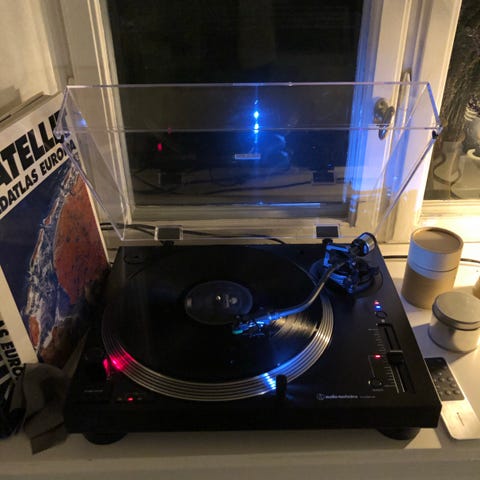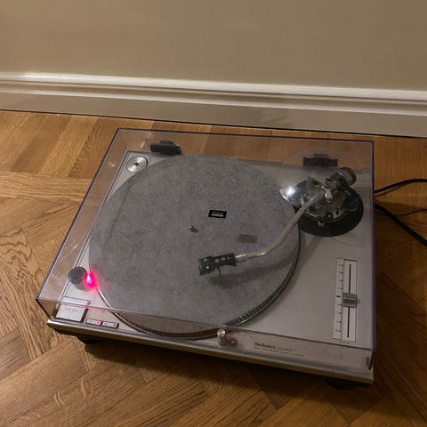 Säljer vinylpaket bestående av Technics SL-D210 skivspelare, Dynavox TC-750 RIAA-steg samt 47 vinylskivor i varierande skick.