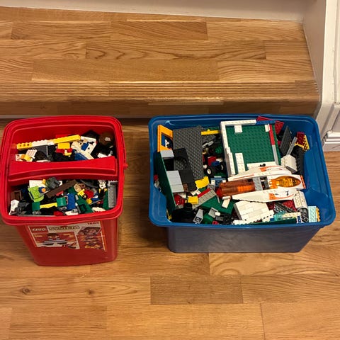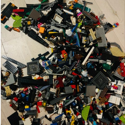 3,8 kg blandat Lego. Många basbitar i olika storlekar. Tvättat och rensat bort trasiga bitar.