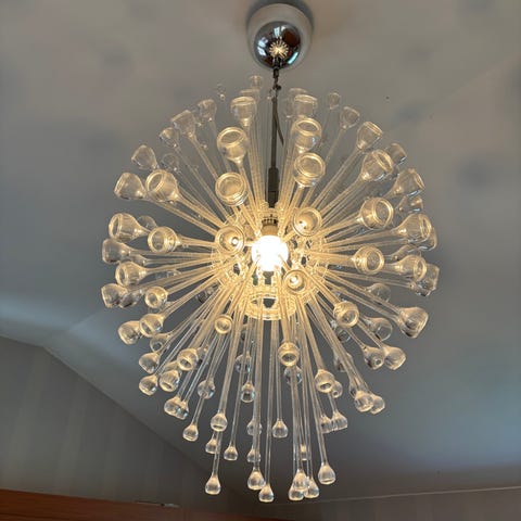Härlig röd designlampa från Luxo modell EAS -P150 med vit textilkabel, formgiven av Olle Andersson. Har en till ifall man söker ett par. Perfekt ovan köksbänken eller i fönstersmygen. 350kr/st