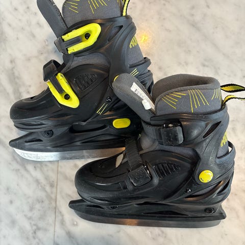 Fina skridskor med justerbar storlek 29-32. Slipades förra säsongen och har åkts på två gånger sen dess.