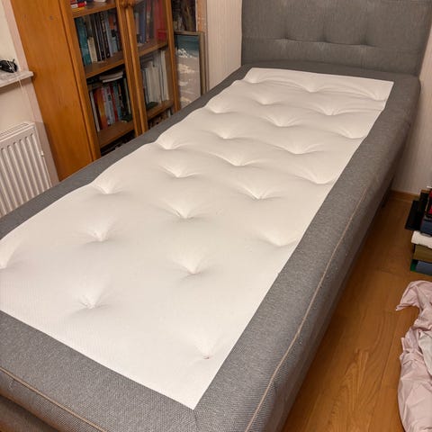 Säng med eller utan bäddmadrass. Bra skick förutom en fläck på madrass.