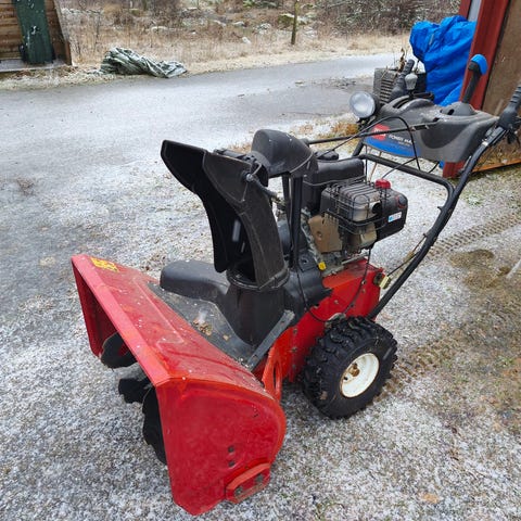 66cm bred, inbyggd 230v startmotor, Funkar perfekt, joystick för styrning av snön när man kör. Inkl kedjor. Kvalitets slunga från 2013-14. Säljes pga av att jag ska skotta med traktor.