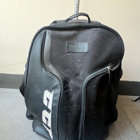 CCM Målisbag i svart färg. Största på marknaden. Stor, kraftig hockeyväska för målvakter. Rejält slitstark och mycket lätt att packa i med sin dragkedjeöppning i fullängd. Tre kraftiga hjul.