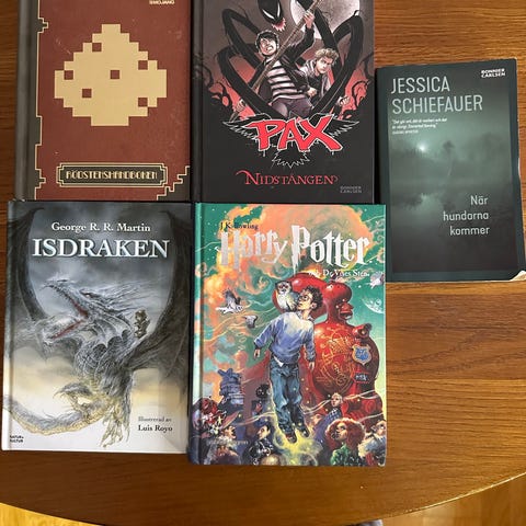 En samling av olika böcker inklusive titlar som: