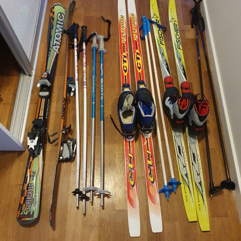 - längdskidor junior Edsbyn ca 140 cm, 200 kr + stavar 105 cm, 100 kr