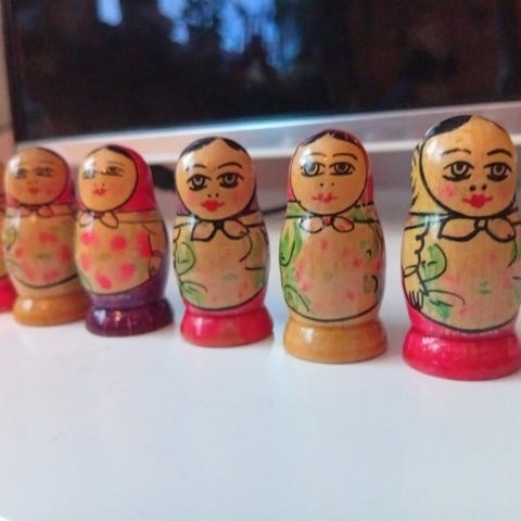 Samling dockor i olika traditionella kläder och stilar