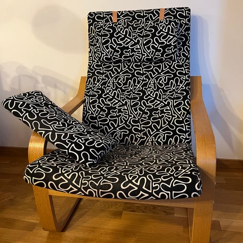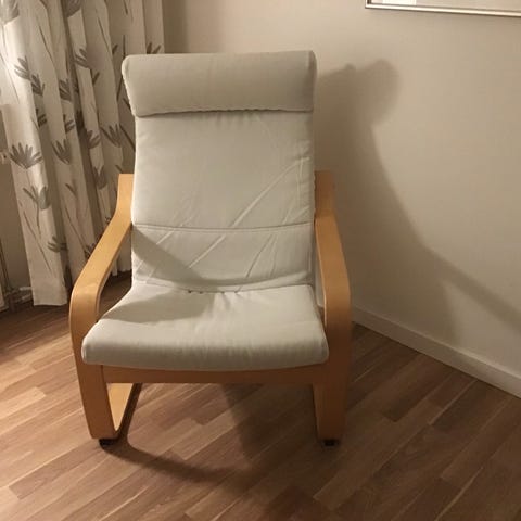 Fåtöljen POÄNG har stilrena svängda linjer i formböjt trä som ger en behaglig svikt. Hög rygg ger skönt stöd för nacken. Den har funnits i flera decennier och är fortfarande lika populär.