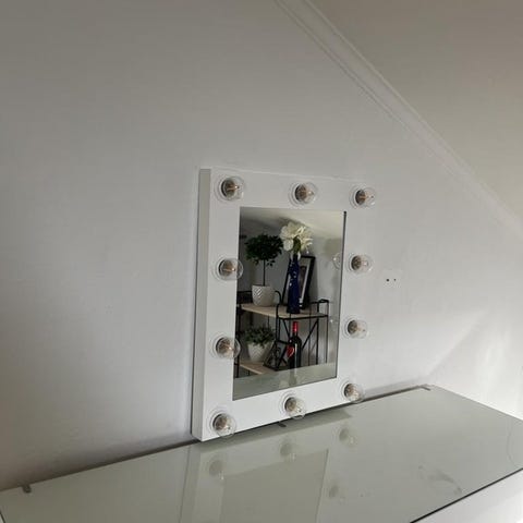 Sminkbord, spegel och lampor
