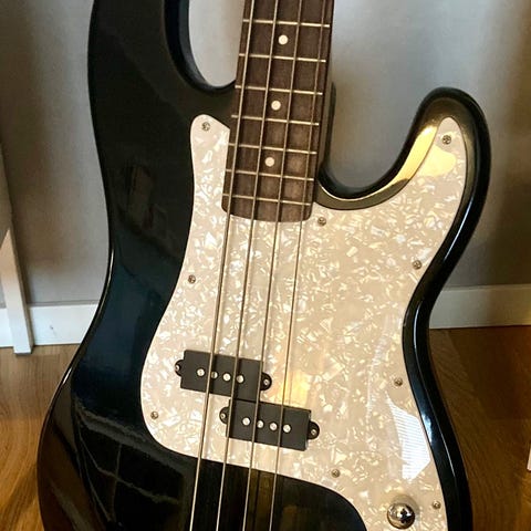En begagnad elbas som jag köpte här på blocket för ett par år sedan. Skicket är fint, men det finns ändå lite synliga märken.