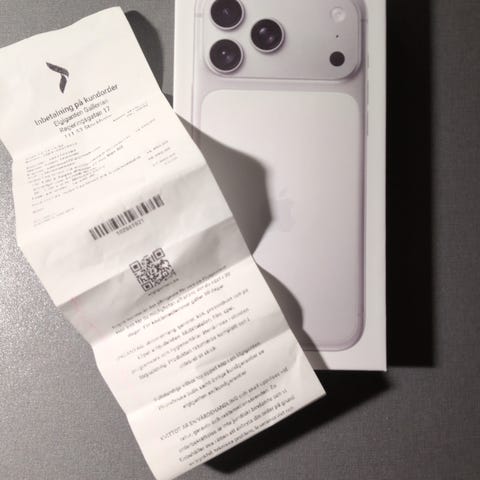 Apple iPhone 17 Pro mobiltelefon med 256 GB lagringskapacitet. Kvitto medföljs