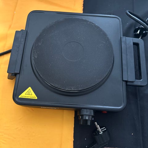 Electric cooking plate with two hot plates. We bought it 1,5 years ago but used it only 2-3 times since our stove was broken. For technical details, see the last photo. Original price was 590kr. Pickup only.
