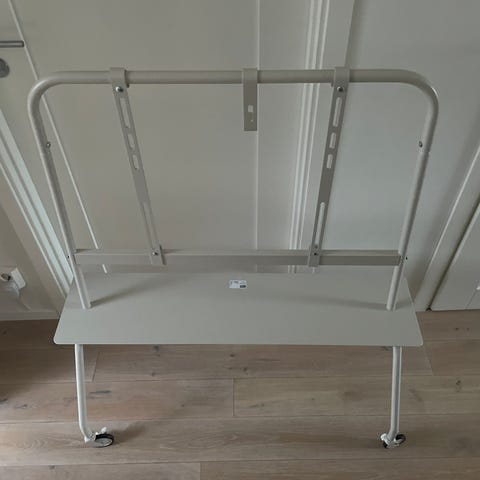 Stativet är i vitt utförande vilket ger ett modernt och luftigt intryck i hemmet. Det är mycket stabilt och rullar smidigt på låsbara hjul.