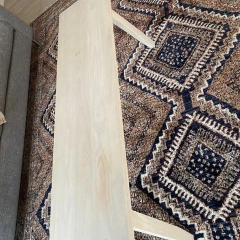 Säljer soffbord med bordsskiva i massiv ask med metallben.