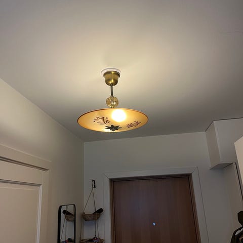 Klassisk lampa i mässing med opalglas