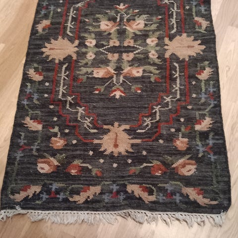Skön stor ullmatta i mjuka sköna natur färger i harmoniska ränder. Inköpt på IKEA. För kalla golv så ger ull värme under fötterna eller för barn som leker på mattan. I använt skick där fläckar förekommer.