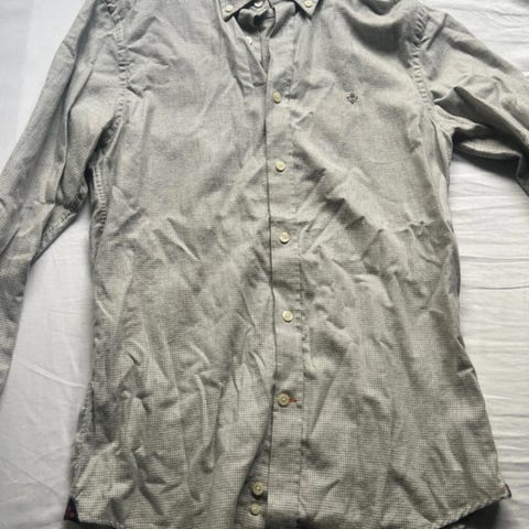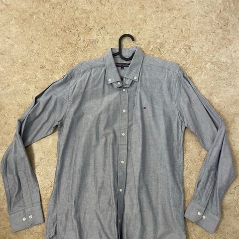 Tommy Hilfiger skjorta för herr i storlek XXL. Tillverkad av akrylmaterial i grå färg. Skjortan har lång ärm och knäppning fram.