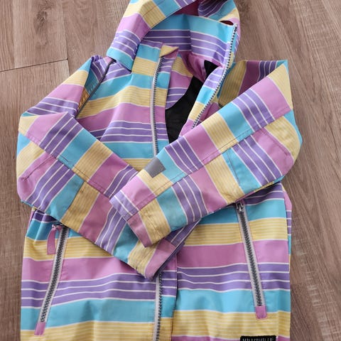 Färgglatt och lekfullt mönster som syns bra ute – praktiskt och snyggt! Jackan har huva, dragkedja framtill samt fickor med dragkedja. Reflexdetaljer finns för ökad synlighet. Mjuk och varm insida som gör den bekväm att bära.