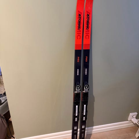 Fina nästan oanvända vallningsfria längdskidor 100cm med stavar 90cm.