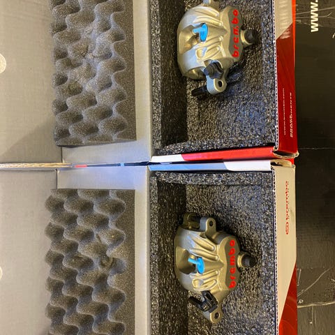 Kawasaki H2R kayaba framgaffel med tillhörande bromsskivor och bromsok. Inkluderar två framgaffelben, två brembo bromsok med bromsledningar, samt två bromsskivor monterade på fälg.