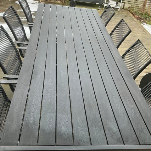 Trädgårdsmöbler i fint skick köpt från jysk. 6 stolar med som är fina med recliner. Ryggstödet kan sjunka lite när man lutar sig bakåt.