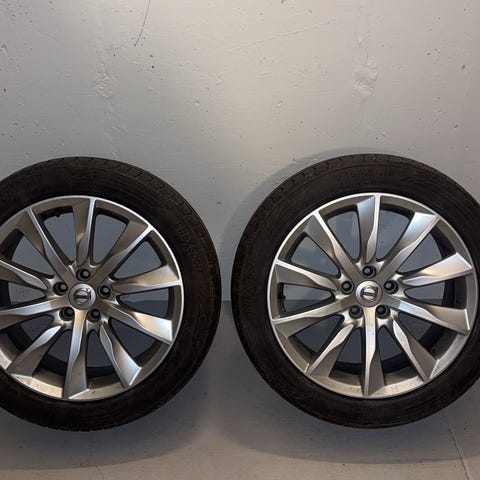 Lättmetallfälgarna har repor, men fungerar och passar Volvo.