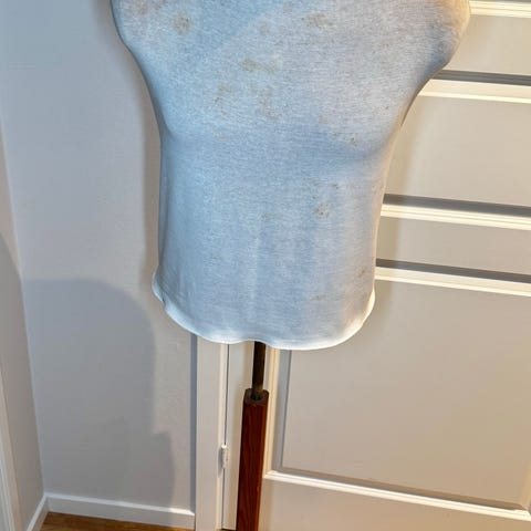 Svart mannekäng avsedd för herrkläder med justerbar höjd. Passar för visning och fotografering av kläder. Stabilt stativ med rund bas för enkel placering. Skyltdocka. Provdocka. Stockmann. Finns vid rådhuset.