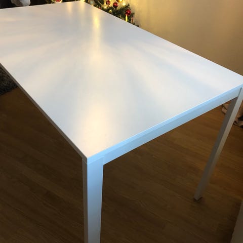 Litet köksbord med 4 stolar. Förmodligen IKEA.