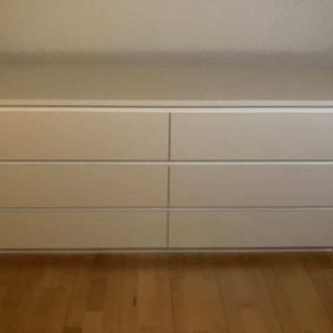 Stadig byrå med sex stora lådor som är enkla att öppna och stänga och rymmer mer än man kan tro. Fint skick, ett litet märke i bakre kant (se foto)