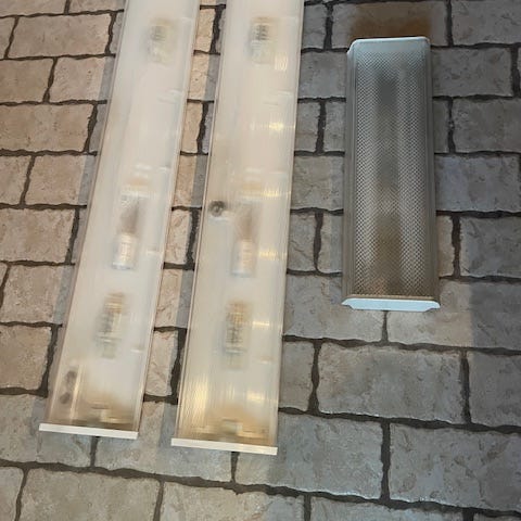 6st lysrörsarmaturer från Malmbergs, perfekt till garaget, binder eller förrådet. Längd 1260mm