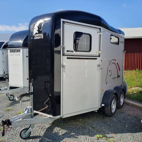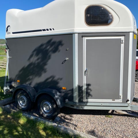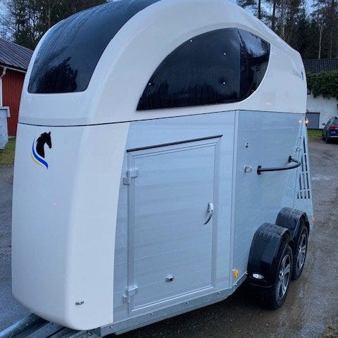 Nyservad och nybesiktad rymlig glasfibervagn med stor sadelkammare.