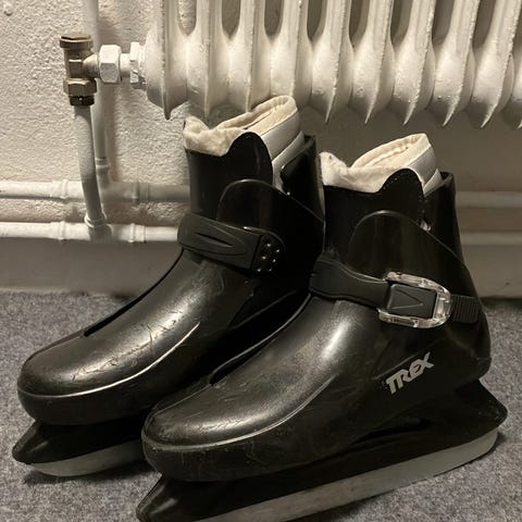 Skridskor Stadium C Series Rookie ishockeyskridskor för barn i storlek 34. Skridskorna är vita med svarta och orange detaljer. De har spännen för justering.