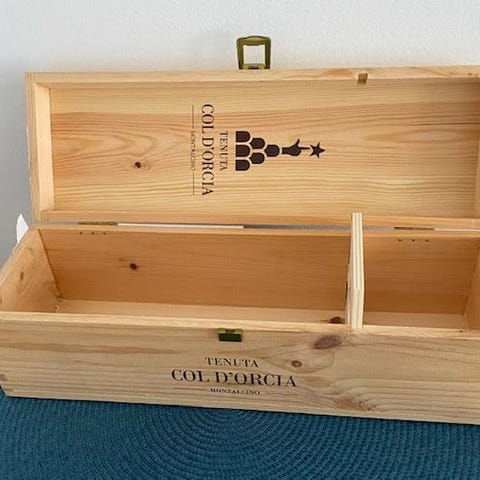 Trälåda med texten Bitsocker tryckt på sidan. Lådan är tillverkad av trä och har en rektangulär form. Sockerlåda. Pris: 500 kr.