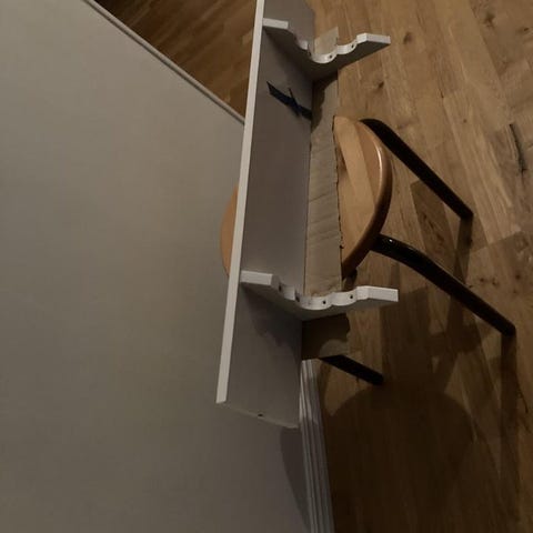 En spricka i övre kanten av hyllan (se bild).