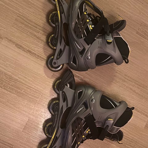Säljer nu ett par rullskriskor storlek 46. Dem är endast använda en gång då jag ramlade och skadade mig rejält. Sedan dess har jag inte vågat åka igen i rädsla av att jag ska skada mig igen. Det medföljer även knä- och armbågsskydd i storlek large. Dem räddade dessvärre inte mig men det beror ju helt på hur man ramlar.