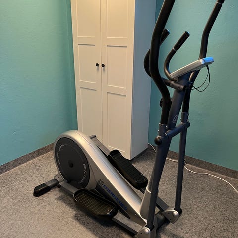 Homeline Crosstrainer 717X träningsmaskin med digital display och handpulsmätare. Maskinen är avsedd för inomhusträning och erbjuder ett skonsamt träningspass för hela kroppen.