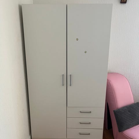 Garderob med trådbackar samt 3 lådor