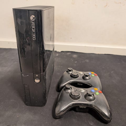 Xbox 360 E model 1538 med strömsladd.