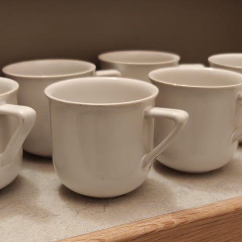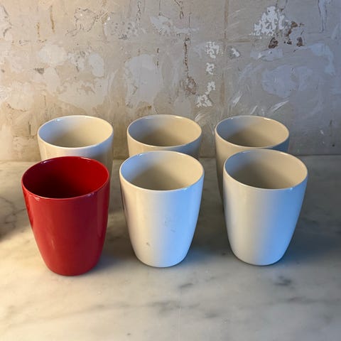 Kaffekoppar 6 st med tillhörande svarta underlägg i trä