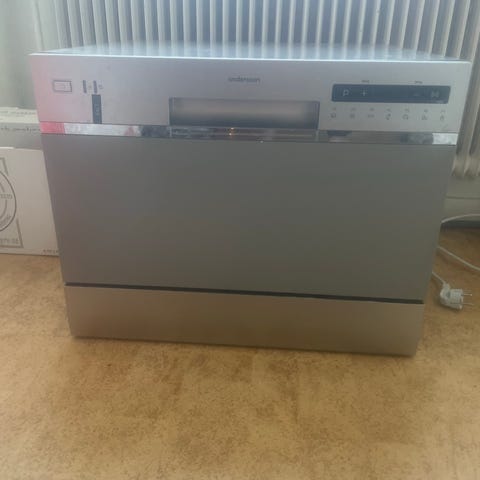 Cylinda underbyggd diskmaskin avsedd för inbyggnad under köksbänk. Produkten har en front i vitt och är utrustad med flera korgar för disk och bestick.