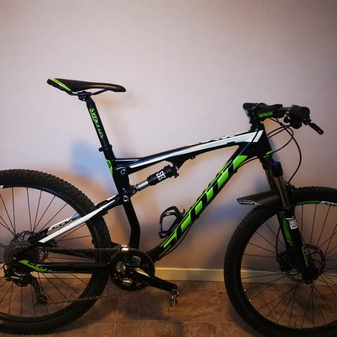 Tänkte sälja min scott spark 910 2016 årsm storlek LARGE som är en fin hel dämpad kolfiber cykel. 3 stegs låsning av fox dämparna både fram och bak. Sitter xt bakväxel, xt bromsar och xt vevparti på den. Nytt vevlager i somras och alla vajrar är bytt i somras också. Sitter även nya däck med tubeless på den. Mycket lätt, ligger på en vikt runt 10 kg. Perfekt cykel för den som letar en extremt bra cykel för en bra peng. Tveka inte att höra av er.