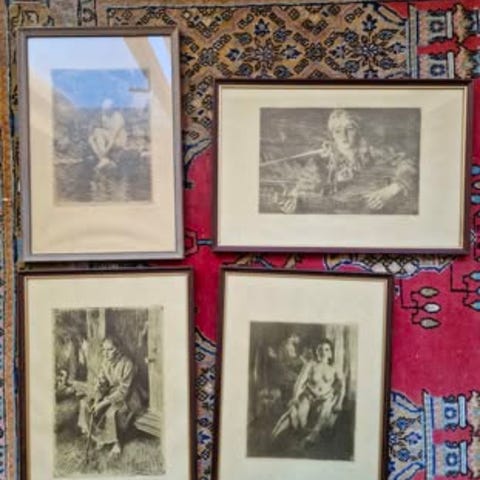 Säljer fyra inramade tavlor av Anders Wolke. Måtten på ramarna är 24,5 cm x 20 cm på de större och 22 cm x 19,5 cm på de mindre