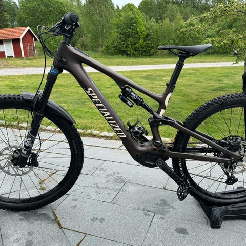 Jag köpte cykeln i april 2024 från Sportson där jag arbetade som cykelmekaniker. Cykeln cyklades endast 19 turer, mestadels på Änggårdsbergen, totalt cirka 360 km. Batteriet har bara 7 laddningscykler. Cykeln är i perfekt skick, som ny, förutom några mindre repor på bakväxeln, pedalerna och vevarmarna.