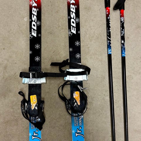 Första längdskidor för barn, vallningsfria. Längd 120 cm.