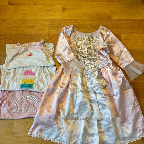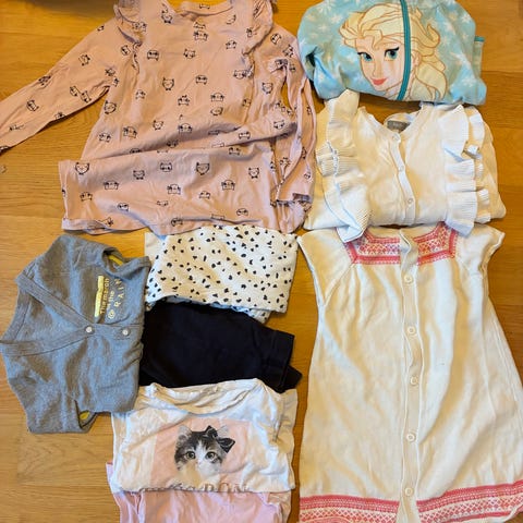 Flicka barnkläder i storlek 122 till 128 med flera olika färger.