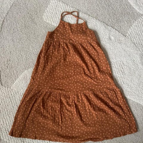 Topmodel klänning för flicka i storlek 110. Klänningen är flerfärgad med ett rutmönster och har en vit volangdetalj runt halsen. Det är en elegant klänning för små barn att ha på sig vid finare tillfällen.